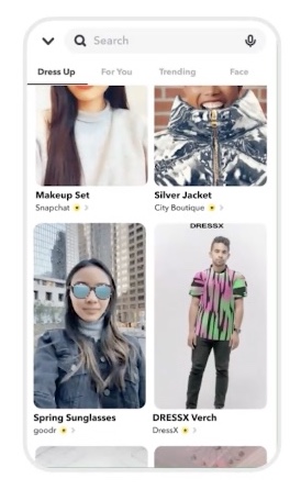 Snapchat will introduce a new in-app destination called “Dress Up,” where users can browse and discover new try-on experiences from creators, retailers and fashion brands in one place. “Dress Up” will be first available in Lens Explorer, but will soon be added one tap away from the Camera in the AR Bar.