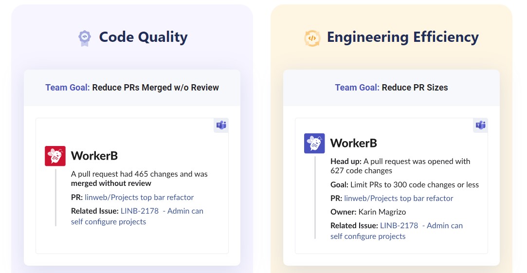 In addition, LinearB then also helps teams set their own goals so they can track their own progress, and also helps them automate routine tasks like creating Jira tickets (because while it’s often at the core of what a development team does, nobody enjoys managing Jira tickets).
