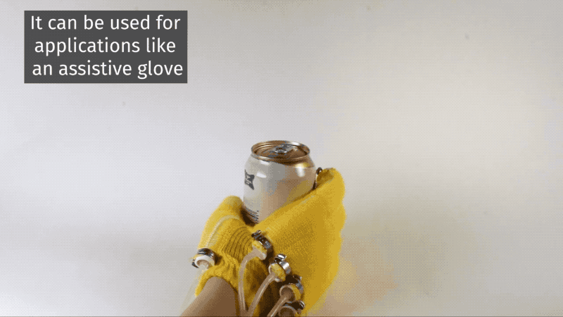 The MIT CSAIL team calls them “banana fingers,” and I can’t really disagree. They’re oblong and bright yellow, but as visually arresting as they are at first glance, they do serve a function. The glove is effectively a kind of soft robotic. Its uses pneumatic actuation (air power, if you will) to serve as an assistive wearable.