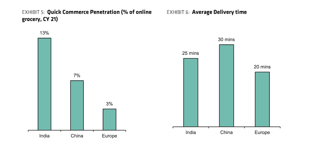 The average size of an order placed on an instant delivery service is currently about $6 in India, compared to $12 to $15 for traditional online grocery orders, they said. “But recent cohorts have shown improving stickiness, with basket size increasing with increase in usage. Quick commerce models have seen improving monthly order frequency (mature cohorts at 3-4 times a week, with healthy AOV of 400-500 Indian rupees). Quick commerce players are focused on driving a high frequency basket which will drive better economics,” they added.