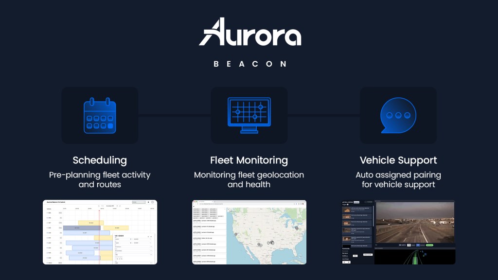 “This level of insight into and control over the real-time location, status, and objectives of autonomous vehicles will help Aurora’s customers maximize their utilization and responsiveness to shifting conditions and network demands,” Aurora said in a statement.