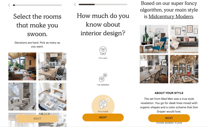 Mayer told TechCrunch, “We’re trying to bring a more modern approach to interior design where you can take the benefits of online shopping, online communication, texting and messaging and also still meet with your designer and walk them through your space… So take the traditional experience, power it with a lot of technology and our designers to hopefully provide something that’s still accessible and affordable but combining a more traditional, high-touch experience.”