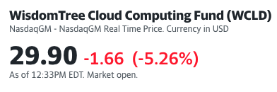 This particular ETF tracks the Bessemer Cloud Index, a list of public software companies that mostly deliver their business through the cloud. The basket of stocks peaked at $65.51 per share, meaning that as I write to you, it’s off 54% and change.