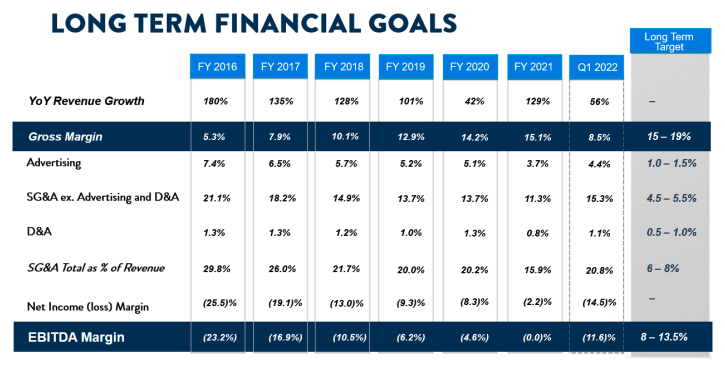 Still, the company has to make changes. It missed every single one of its long-term financial goals in Q1 2022: