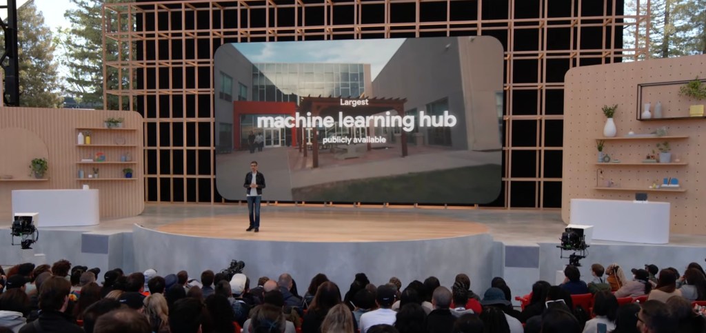 Google’s fourth iteration of its Tensor Processing Units launched at last year’s I/O and a single TPU pod consists of 4,096 of these chips. Each chip has a peak performance of 275 teraflops and each pod promises a combined compute power of up to 1.1 exaflops of compute power. Google now operates a full cluster of eight of these pods in its Oklahoma data center with up to 9 exaflops of peak aggregate performance. Google believes this makes this “the world’s largest publicly available ML hub in terms of cumulative computing power, while operating at 90% carbon-free energy.”