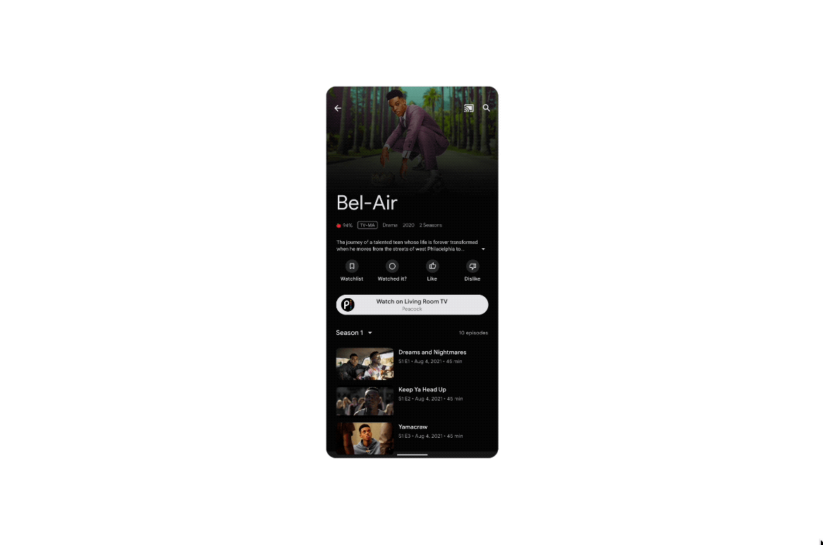 The company didn’t provide additional details about its plans to add support for casting to the app, saying those would come closer to launch. But in a photo Google provided, it showed at least one of the supported apps is NBCU’s Peacock.
