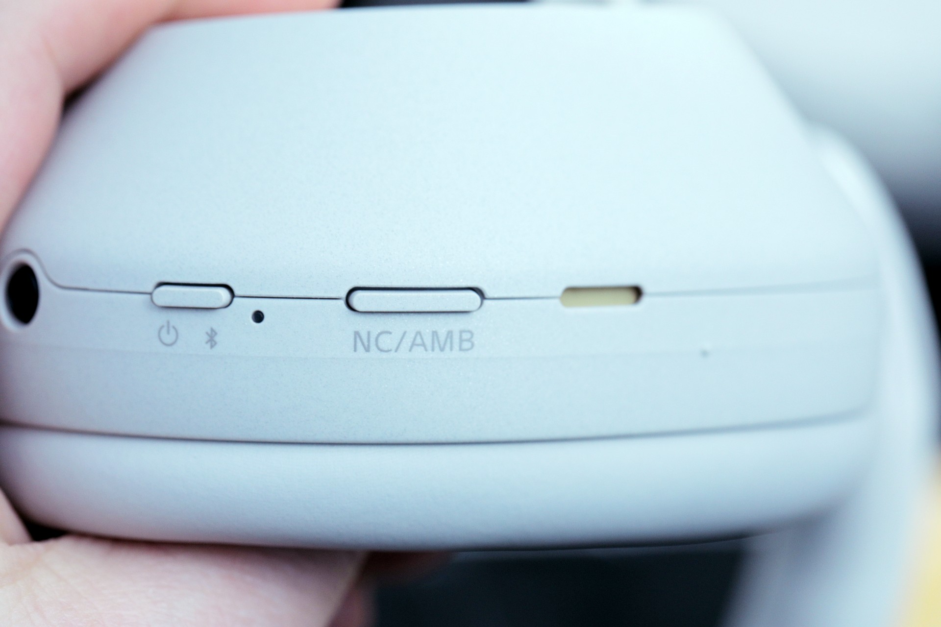 The button layout is the same here. You’ve got two on the left cup, for power/Bluetooth pairing and toggling ANC on and off. Using the Sony app, you can also assign different features by double- and triple-clicking the buttons, which can do things like launch Spotify. Both also feature large touch pads on the cups. By default, double-clicking the right will pick up a song where you last left it. The left cup also features a headphone jack, mercifully. The system ships with that cable, so you can hard wire to the seat-back or plug into your laptop.