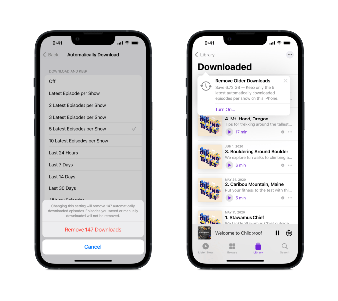 Because Apple Podcasts is able to download shows to listeners’ devices, the app can end up consuming a lot of device storage. On iPhones in particular, this can lead to users running out of room for other essential activities — like taking photos or installing new apps and games. This issue was then further complicated by the buggy iOS 14.5 and macOS 11.3 releases, which caused unwanted, older episodes of shows to be downloaded, eating up even more storage.