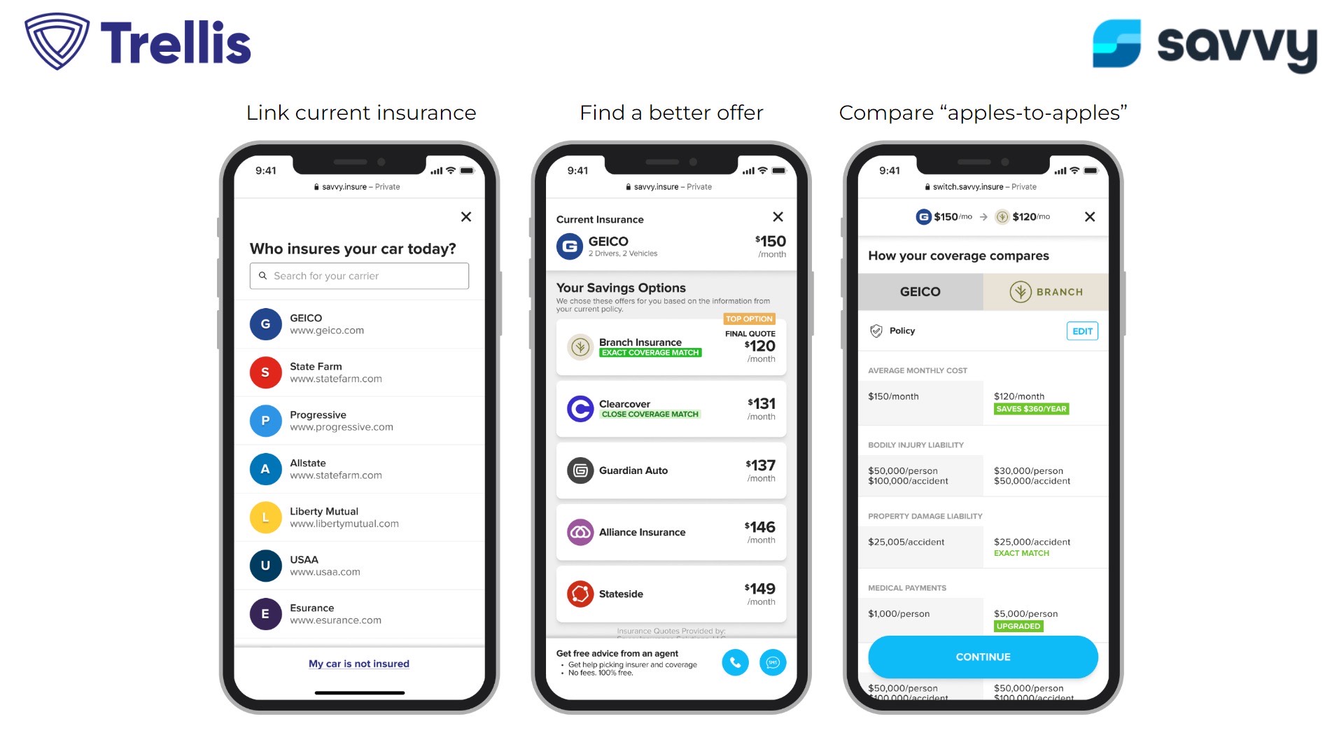 It’s no surprise then that a number of startups have emerged over the years to help consumers tackle this challenge in one way or another, including The Zebra and Jerry. The latest company to gain traction in the space, and raise venture dollars, is Trellis.