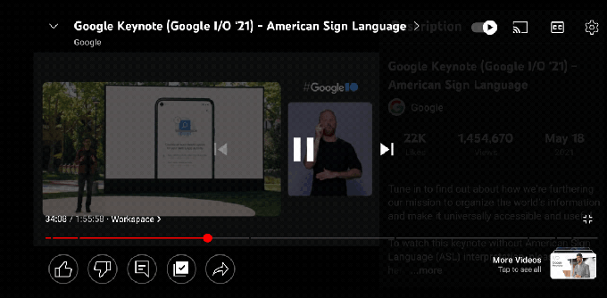 Also, in full-screen mode, a new panel will now appear to display information about the video — like the video description, video chapters and comments. Users will be able to access quick action buttons here to like, dislike, comment, share or add a video to a playlist directly from full-screen mode.
