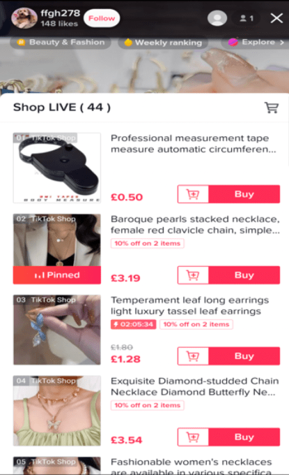 It found TikTok was working on the in-app shopping experience, TikTok Shop, which is offered today in Indonesia, Malaysia, Thailand, Vietnam, mainland China, Hong Kong and the U.K. Here, TikTok appears to be looking at adding a shopping bag icon to LIVE shopping videos which, when clicked, opens up a window where viewers can browse through available products with the option to click to add them to a cart for immediate purchase.