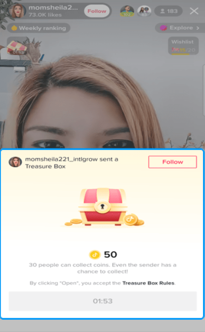 Watchful also flagged another in-development feature that feels like a cross between a game and a virtual gifting experience. It allows users to add a “Treasure Box” to LIVE videos which doles out coins after a timer is up to a random set of users.