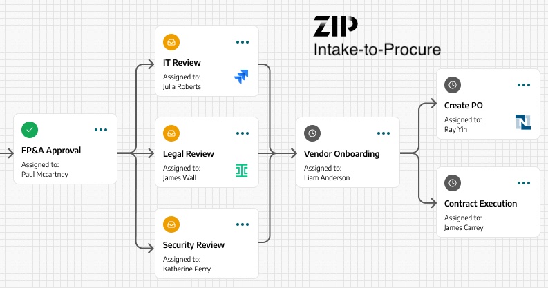 “If we needed to buy software for say $100,000 or work with an agency or hire a contractor, there was no clear one place to go to kick off that type of request,” Zaparde recalls. “The approval process was going to be across a plethora of teams. So we started Zip to solve what we call the intake-to-procure process.”