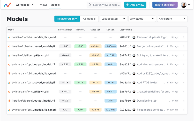 Iterative itself, of course, offers a hosted platform that does all of these things through its Iterarative Studio service for collaborating on ML models and tracking experiments and visualizations, as well as its hosted model registry.
