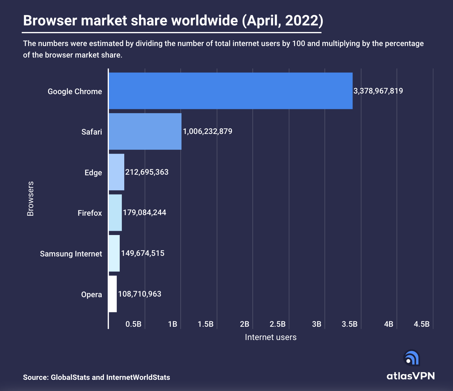 Other browsers in the report included Microsoft Edge, Firefox, Samsung Internet and Opera. As noted, Microsoft Edge was the third most popular browser with over 212 million users, overtaking Firefox, which has 179 million internet users. Since the release of Windows 11, Microsoft Edge became the default browser on all devices and, in turn, received a big increase in its user base.
