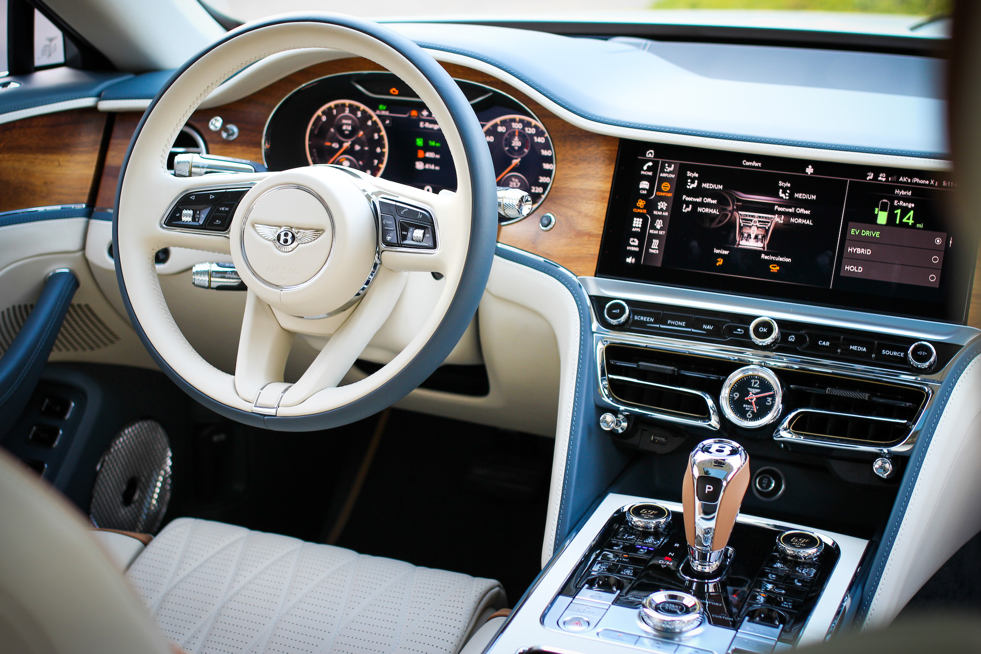 The Flying Spur Hybrid puts its best foot forward at start-up, defaulting to EV Drive. It’s the quiet, gliding hint of what an all-electric Bentley will feel like once it arrives.