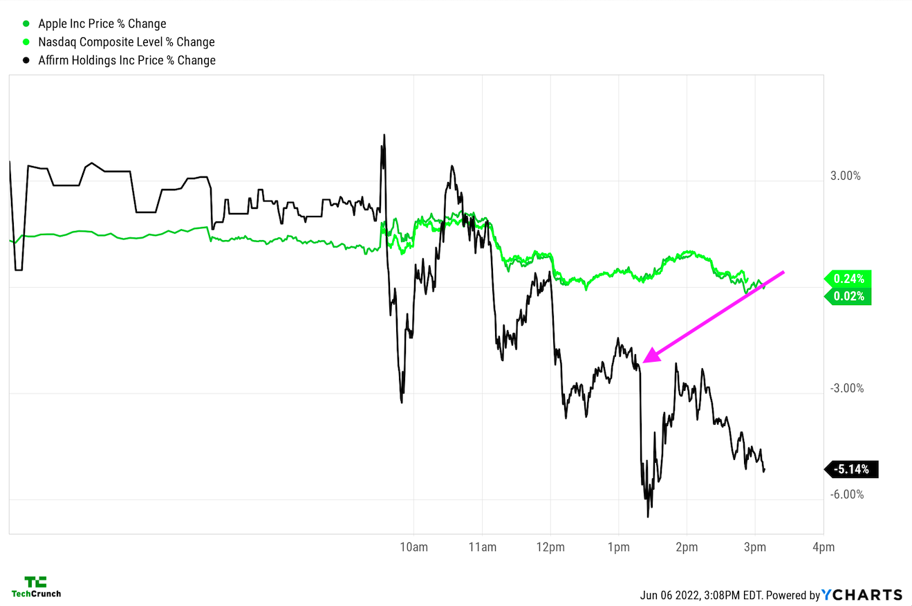 But that doesn’t mean that the Apple event had no impact on the stock market. It did, in the form of taking a whacking to the value of Affirm. Affirm is a publicly traded buy now, pay later (BNPL) service, which competes with Klarna, Sezzle and other similar services from fintech giants. Apple is also getting into the game, it announced today, with a service called Apple Pay Later.