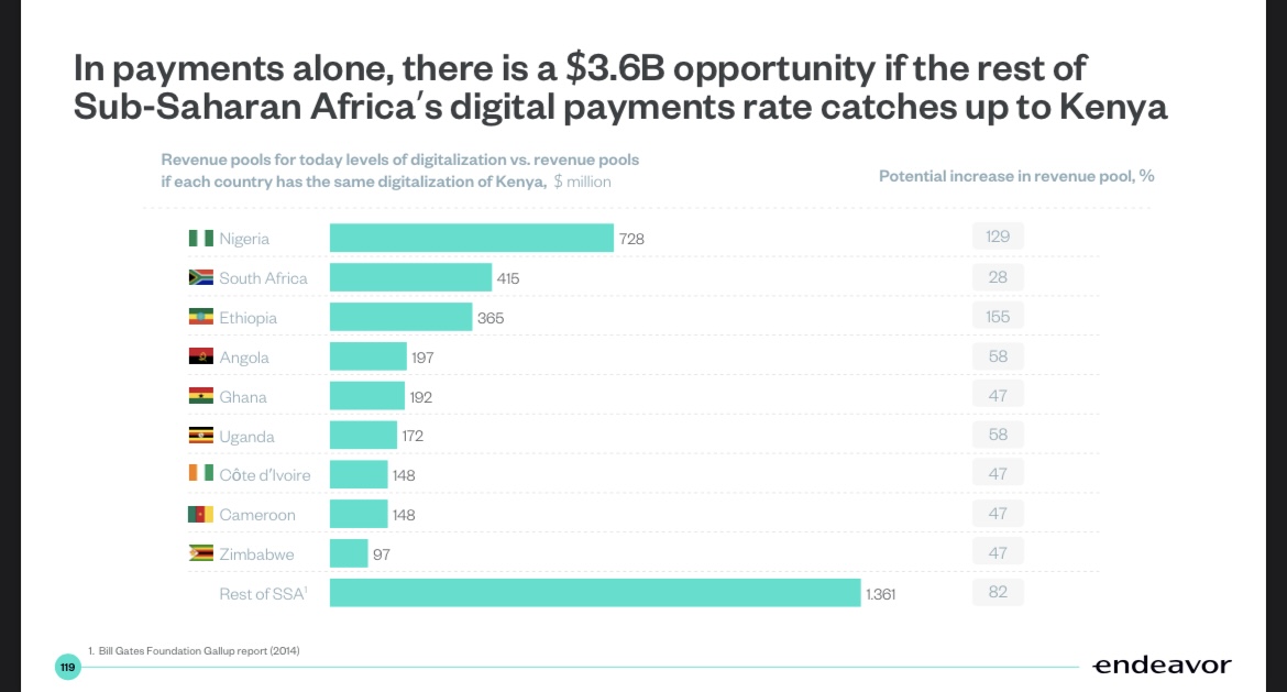 At the end of the report, Endeavor takes an individualistic perspective and deep dive into Africa’s largest markets, emphasizing what makes each country stand out. It calls Nigeria Africa’s largest internet economy and South Africa the continent’s most inclusive internet country. It describes Egypt as having one of the most diverse landscapes of digital businesses and lauds Kenya’s internet economy for contributing the most to Africa’s GDP.