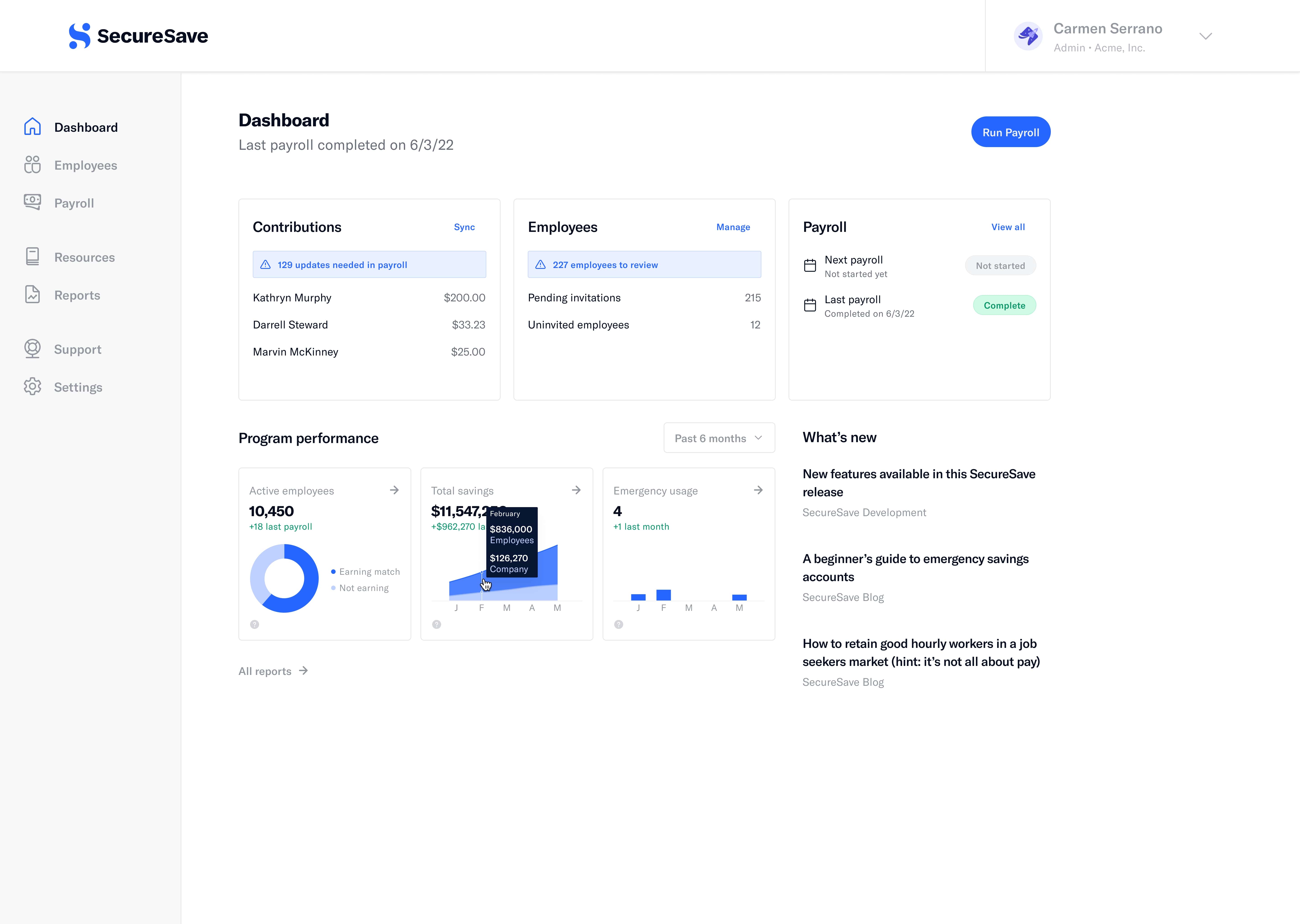 For employers to offer SecureSave, the price is typically $3 per employee per month. Most employers give around $125 per year in incentives, the startup says.