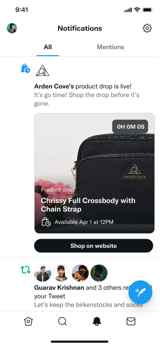 The company explains that many people already come to Twitter to discuss product releases — both before and after the drop actually occurs. They may be anticipating a new drop, bragging they scored the item in question, or lamenting that they didn’t. The new Product Drop feature aims to allow merchants to be a part of that conversation, Twitter says.