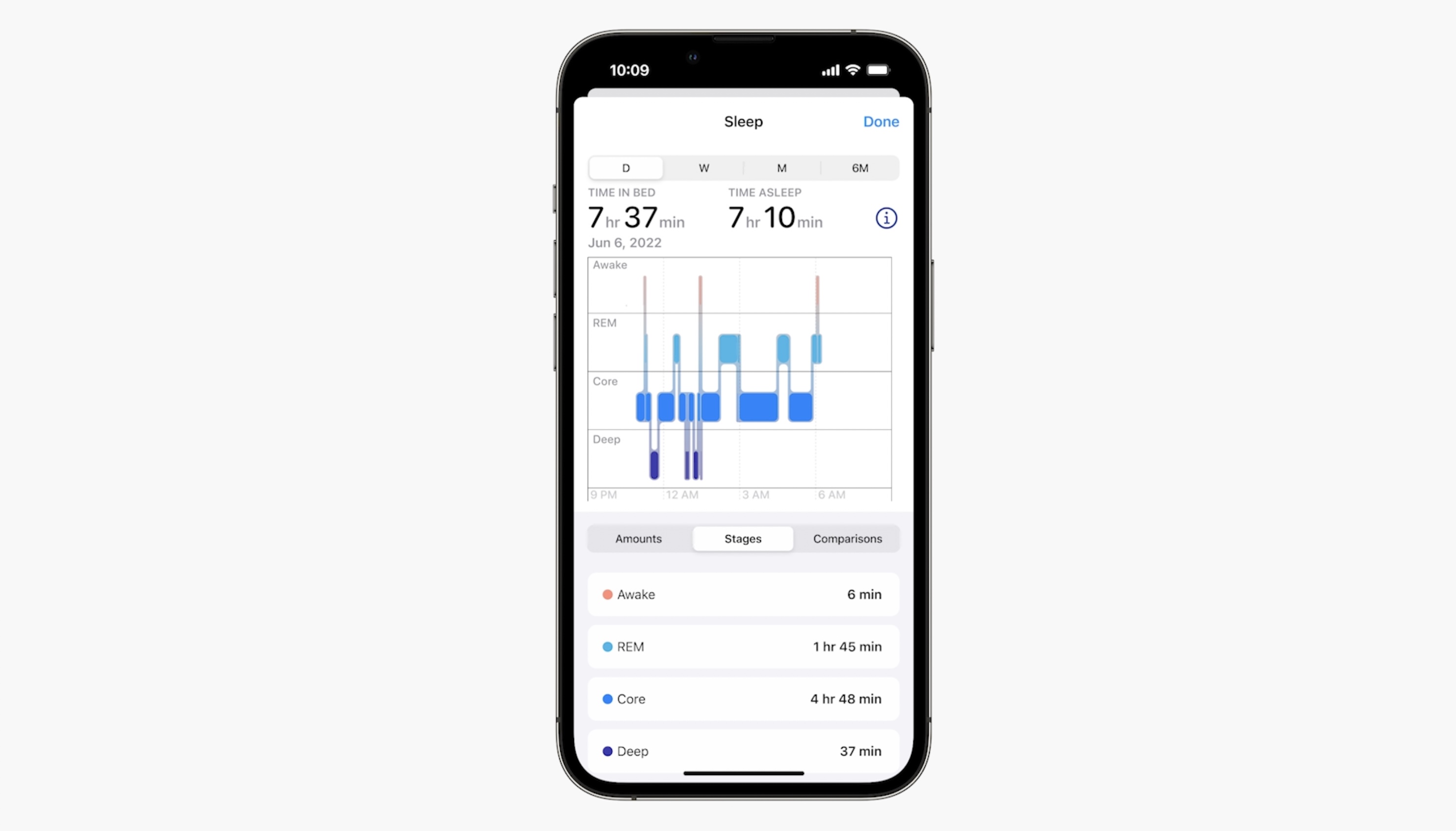 “Prior to sleep stages, we were really focused on helping people meet their sleep duration goals, since that’s really important — that consistency — but we wanted to go a little further and dig into the science, and provide users with more information around their sleep cycles,” Desai explained. “So using the signals from Apple Watch’s accelerometer and heart rate sensor, users will now be able to see their sleep stages while they’re in REM, core and deep sleep.”