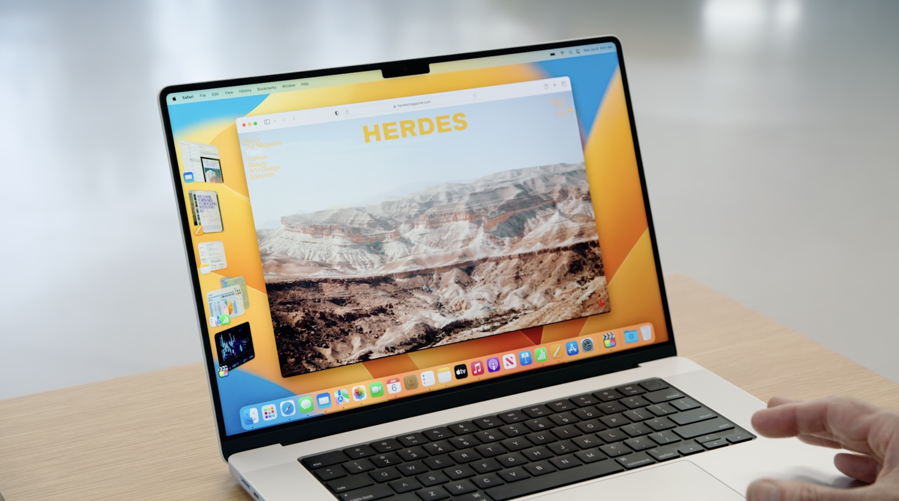 “We really designed Stage Manager to take full advantage [of the M1]. If you look at the way the apps tilt and shadow and how they animate in and out. To do that at super high frame rates, across very large displays and multiple displays, requires the peak of graphics performance that no one else can deliver.