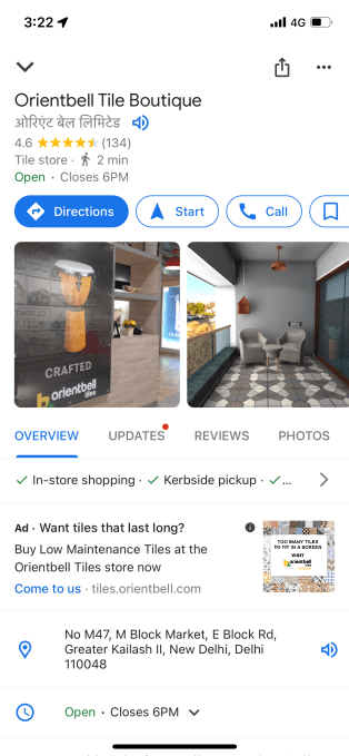 This new feature is similar to business info cards on Google Maps, which display information about the business, including its location, website, operating hours and contact info.
