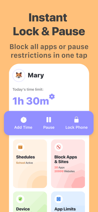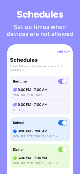 Grace, meanwhile, lets parents create all different types of schedules for their children, not just one Downtime schedule. That means parents can limit screen time for different types of apps at various times. At school, kids could be allowed to access educational apps and the web browser but not entertainment apps, social media or games, perhaps. During family dinner, all distractions could be set to off. Parents may also want to configure other screen time schedules related to their own family rules, like bedtime routines, screen-free weekends, vacations or anything else they choose.