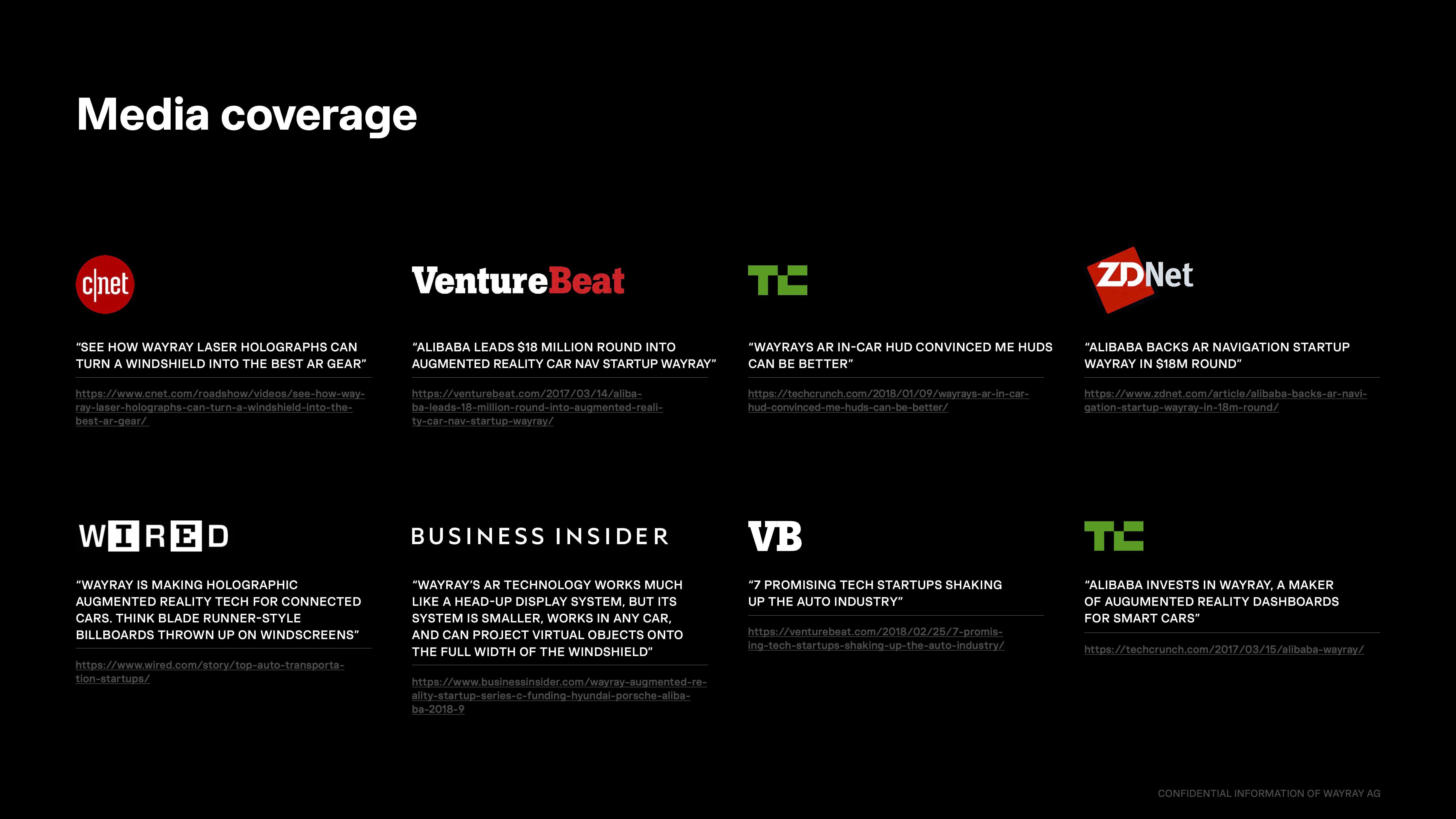 Then there’s the press coverage. It’s not impressive that the company was covered by ZDNet (“Alibaba backs AR navigation startup”) or in our own reporting “Alibaba invests in WayRay”). It’s our job to keep an eye on the industry and covering a funding round is our bread and butter.