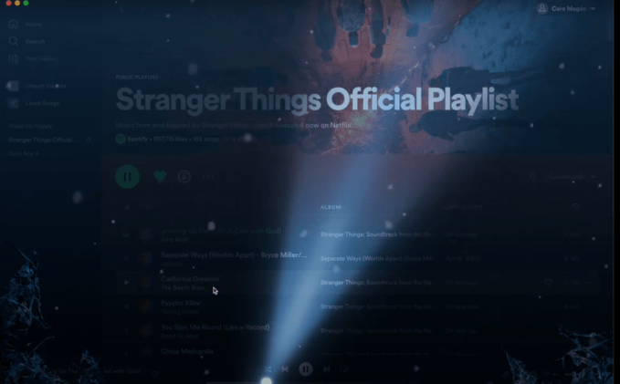 In addition to the Upside Down playlist, Spotify has its “Stranger Things” official playlist, which has more than 969,000 followers and is the most followed playlist on the Netflix Hub, according to Spotify.