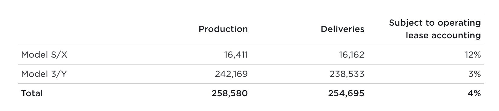 Like in other quarters over the past two years, most of the produced and delivered vehicles were Model 3 and Model Ys. Only 16,411 of the produced vehicles were the older Model S and Model X vehicles.