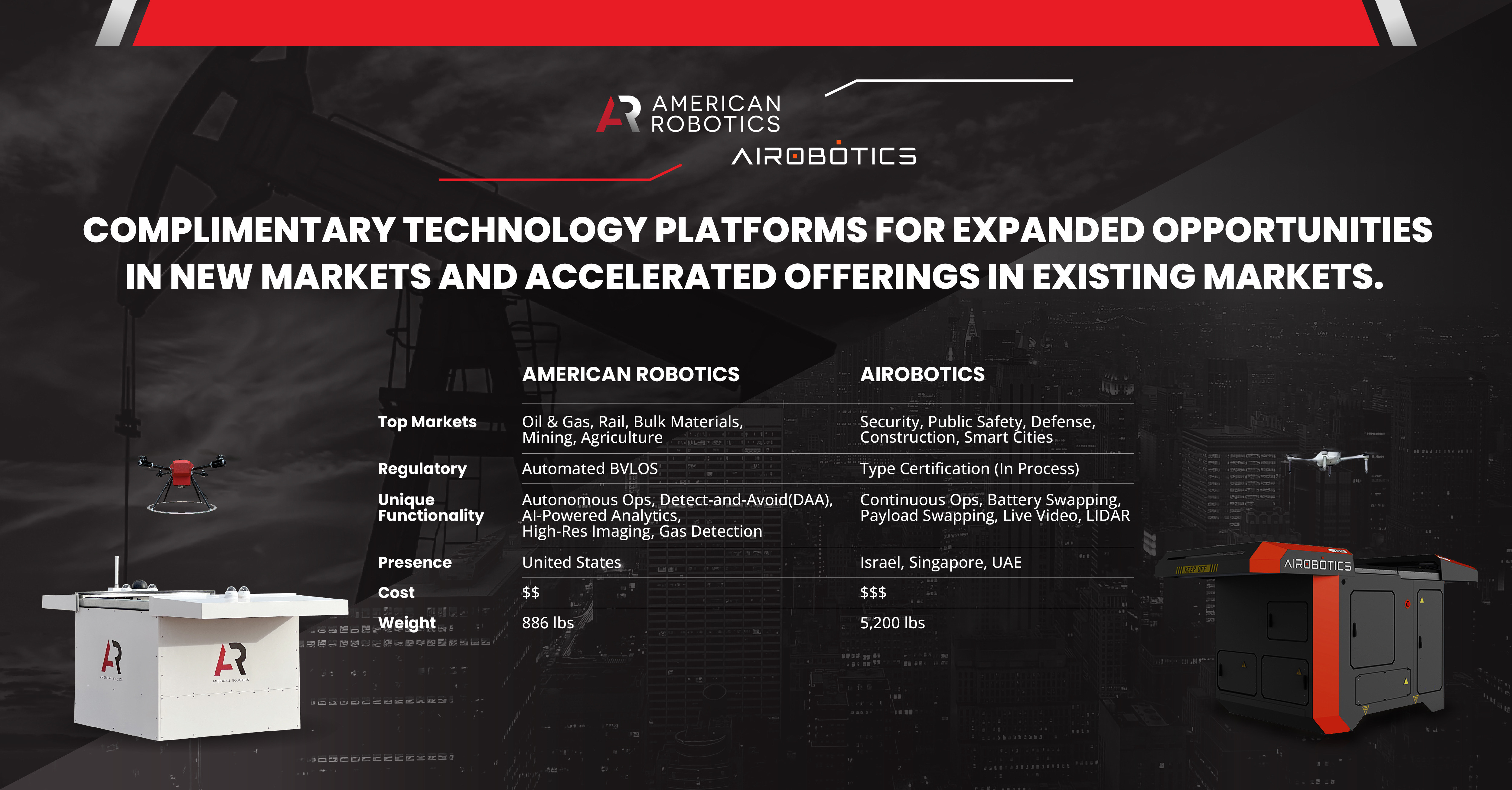 The combination of the two companies brings together leading engineering and aviation talent, regulatory leadership, and world-class technology platforms, providing a unique opportunity to offer a broader scope of solutions and services for customers in accelerated timelines. Further, the combined companies offer the potential to be a truly global provider of automated drone solutions to commercial markets, allowing multi-national customers and governments to focus their UAS programs with the leading solutions provider.