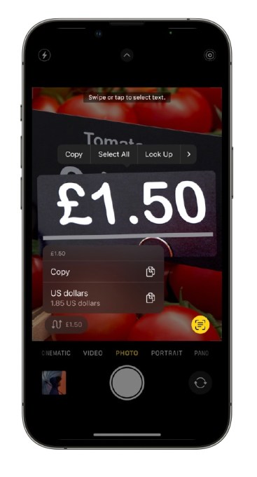 Live text now includes support for videos and converts units automatically. You can also translate foreign languages send an email, create a calendar event, call phone numbers, or track flights from the detected text. This is useful to get data off a business card or quickly read food items and convert currencies from a restaurant menu while traveling.