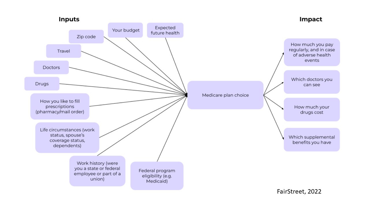 Purchasing Medicare is a complex choice with a plethora of inputs and downstream impacts. The average senior must choose between 57 different plan options, and most can’t tell them apart.
