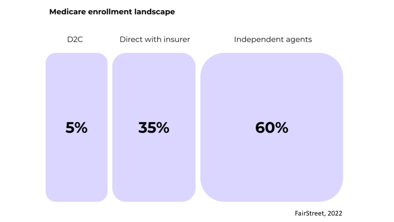 Independent agents are the largest enrollment channel for Medicare programs, onboarding 60% of the covered population. These agents are self-employed (i.e., they work for independent agencies), are carrier agnostic and their incentives are aligned with the seniors in terms of finding the best-suited coverage plan.