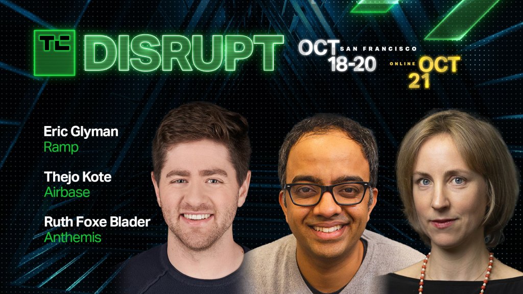 You can understand why we’re thrilled to announce that Ruth Foxe Blader, partner at Anthemis Group; Eric Glyman, co-founder and CEO of Ramp; and Thejo Kote, founder and CEO of Airbase will tackle this topic onstage at TechCrunch Disrupt on October 18–20 in San Francisco.
