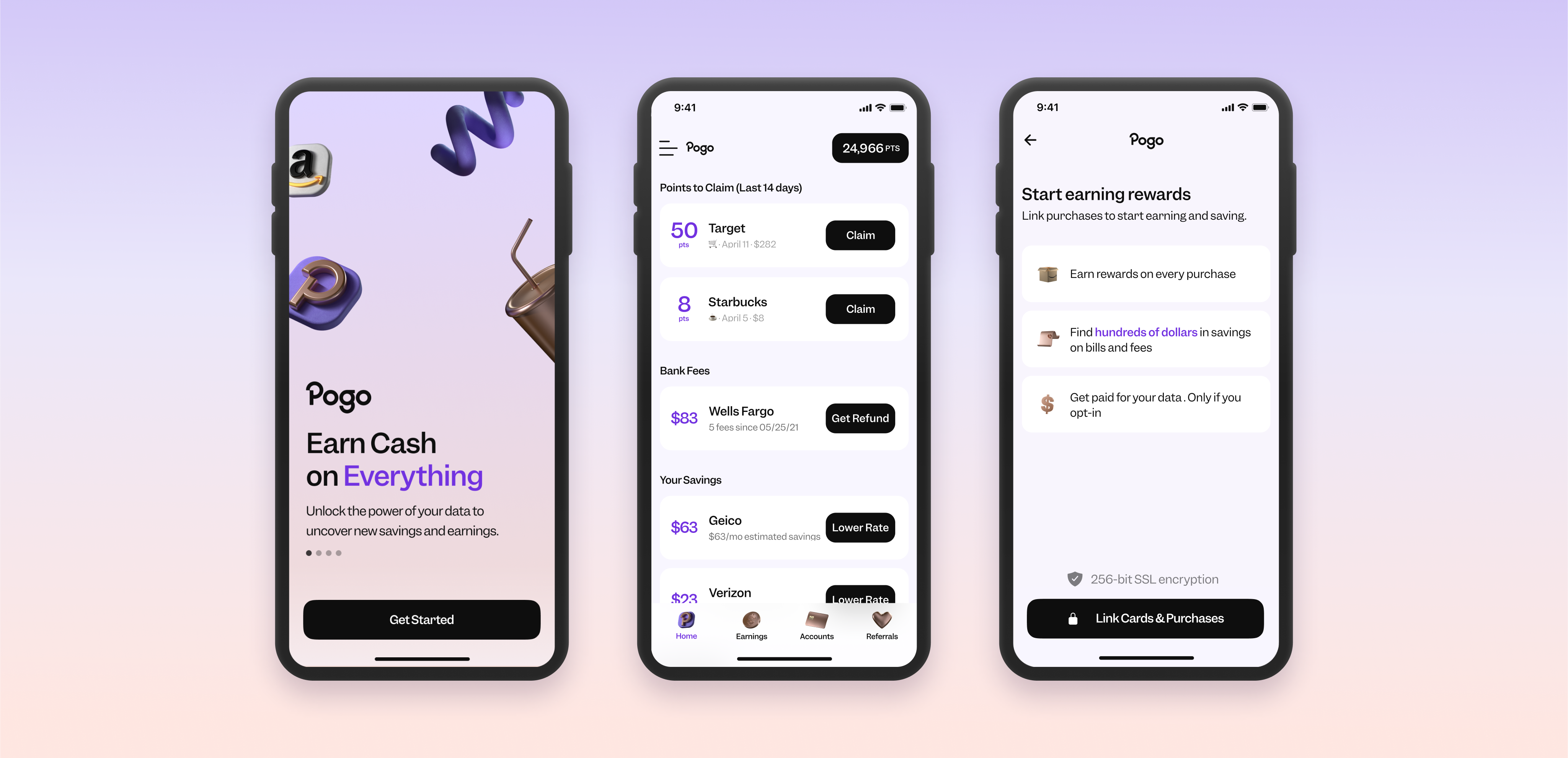 Here’s how it works: When a user joins the app, they are invited to send their data to the company. Once Pogo is connected with different sources of information, it begins to show rewards for purchases or recommendations to “act on” to save money.
