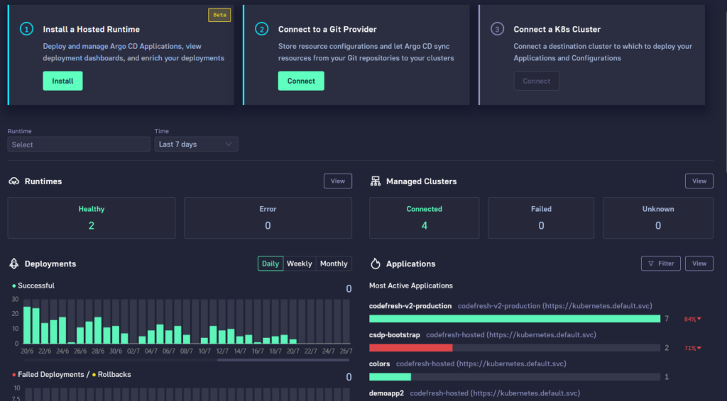 It’s worth noting that Argo offers quite a bit more than “just” Argo CD and earlier this year, Codefresh launched support for Argo Workflows, Rollouts and Events as part of its overall platform. But that was for self-hosted installation. Now, with the launch of hosted Argo CD, Codefresh also offers an end-to-end hosted GitOps platform.