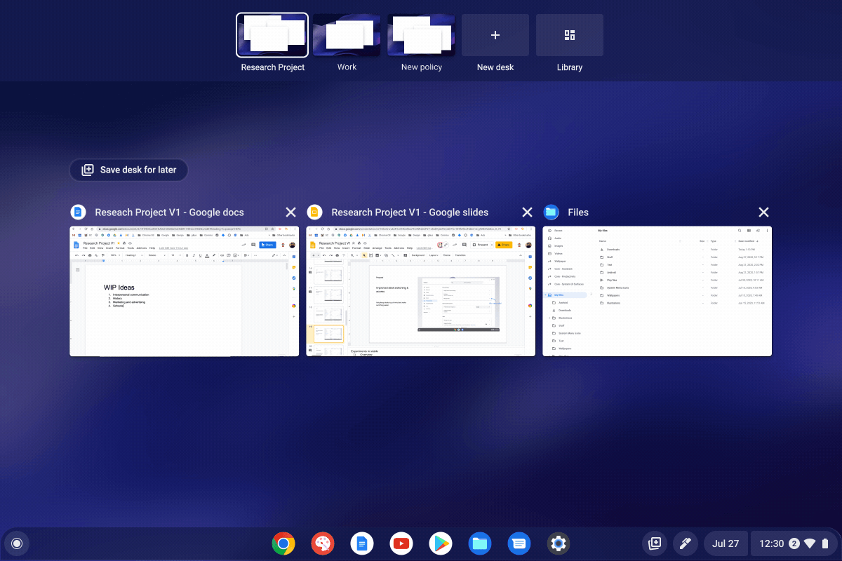 In addition to the new movie editor, Google is also bringing a few other updates to Chromebooks in the new few weeks. Chrome OS will now feature light and dark themes, for example, with transitions between them timed for when the sun sets or rises. There’s also a new version of the Gallery app, which will now feature PDF editing, and a deeper integration between the Chromebook shelf and your Google calendar (Google somehow only refers to these features as coming to Chromebooks and doesn’t mention Chrome OS anywhere in its announcement). For those of you who use virtual desks (I’m not organized enough to think about even one desk, let alone multiple ones), you’ll now be able to save and close an entire desk and then reopen it when you’re ready to resume your work there.