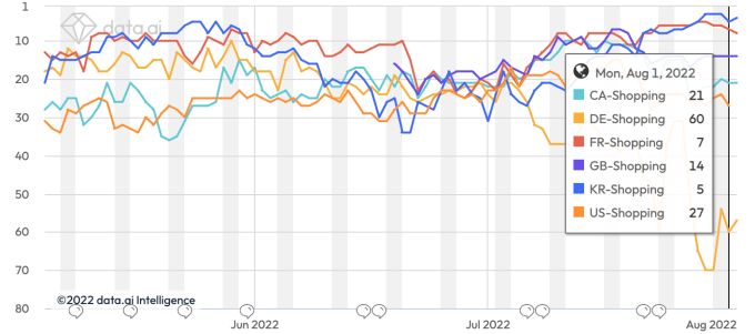 Cider’s other major markets are the U.K., Germany, France, Canada and South Korea, Sensor Tower finds. It currently ranks among the top 10 shopping apps in the App Stores of France and South Korea, app analytics firm Data.ai shows.