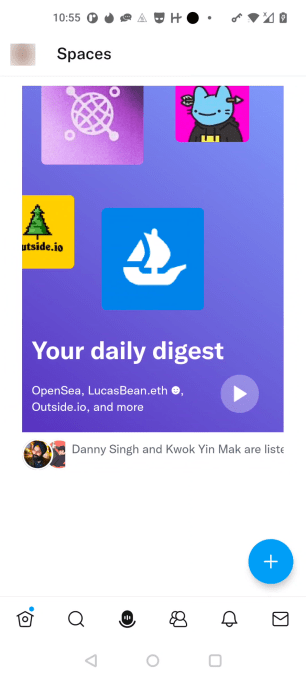Plus, the layout today only makes sense for people who are regular Spaces users. When more casual users have time to kill, they may want to locate Spaces based on what’s being discussed, rather than their connections to the hosts on the social network or what’s “hot” right now. Having a digest could also make the product more compelling for those who want to keep up with Spaces but don’t have time to continually tune in.