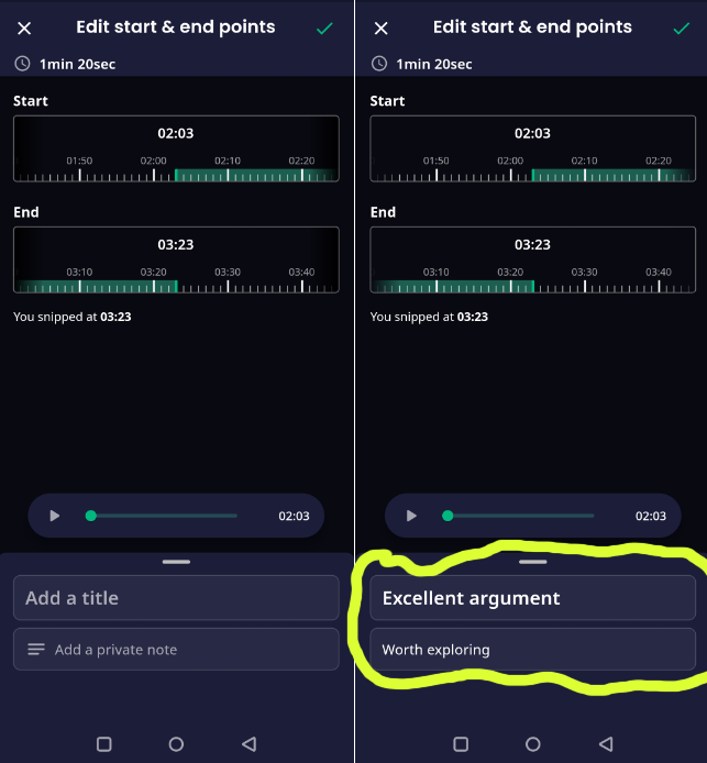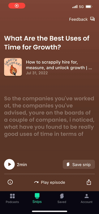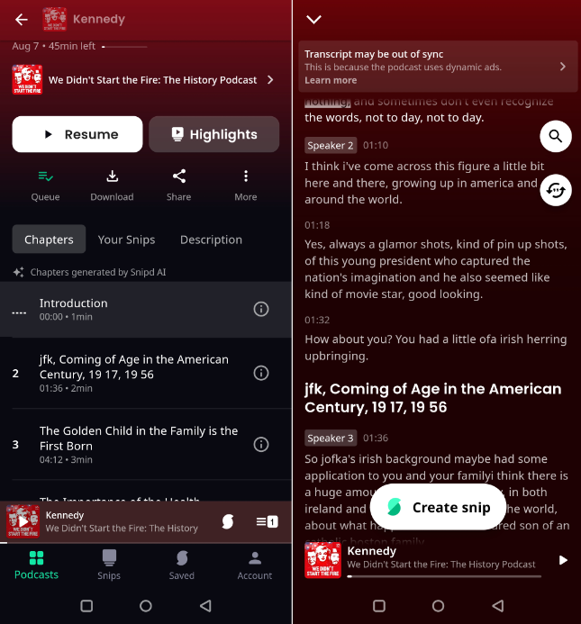 On top of that, users can manually create “snips” as they listen to an episode, allowing them to save their favorite moments and add notes to each clip.