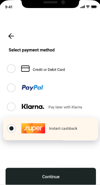 It’s worth noting that Super offers its own payments solution as an option, which apparently has no fees, and if a brand decides to support this, Super gives cash back to the customer instantly. If the brand doesn’t offer Super as a payment option, or if the customer chooses not to pay with Super, then the customer may have to wait up to two weeks.