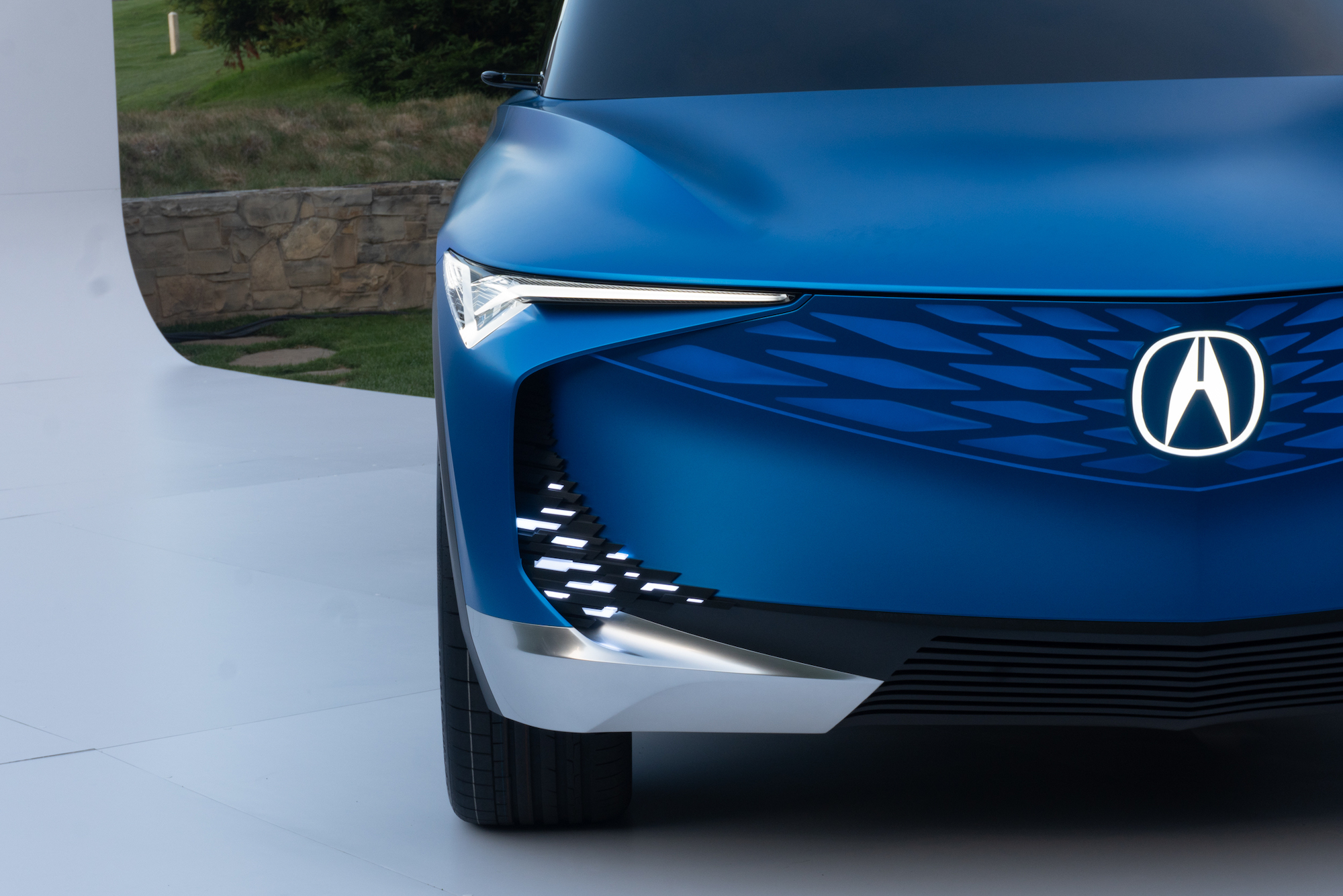 As with most vehicles that’ll never be sold, the concept has an impressive front fascia light signature (called Particle Glitch) that illuminates the automaker’s Diamond Pentagon grille.