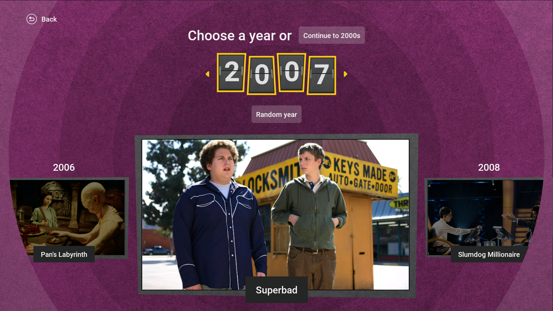To play the new game, users select a decade or year and the app opens a portal to the past, providing six popular titles from history. There are filters you can apply to customize your picks, like choosing whether you want to see award-winning titles, top box office, movies based on genre or movies with your favorite actor.