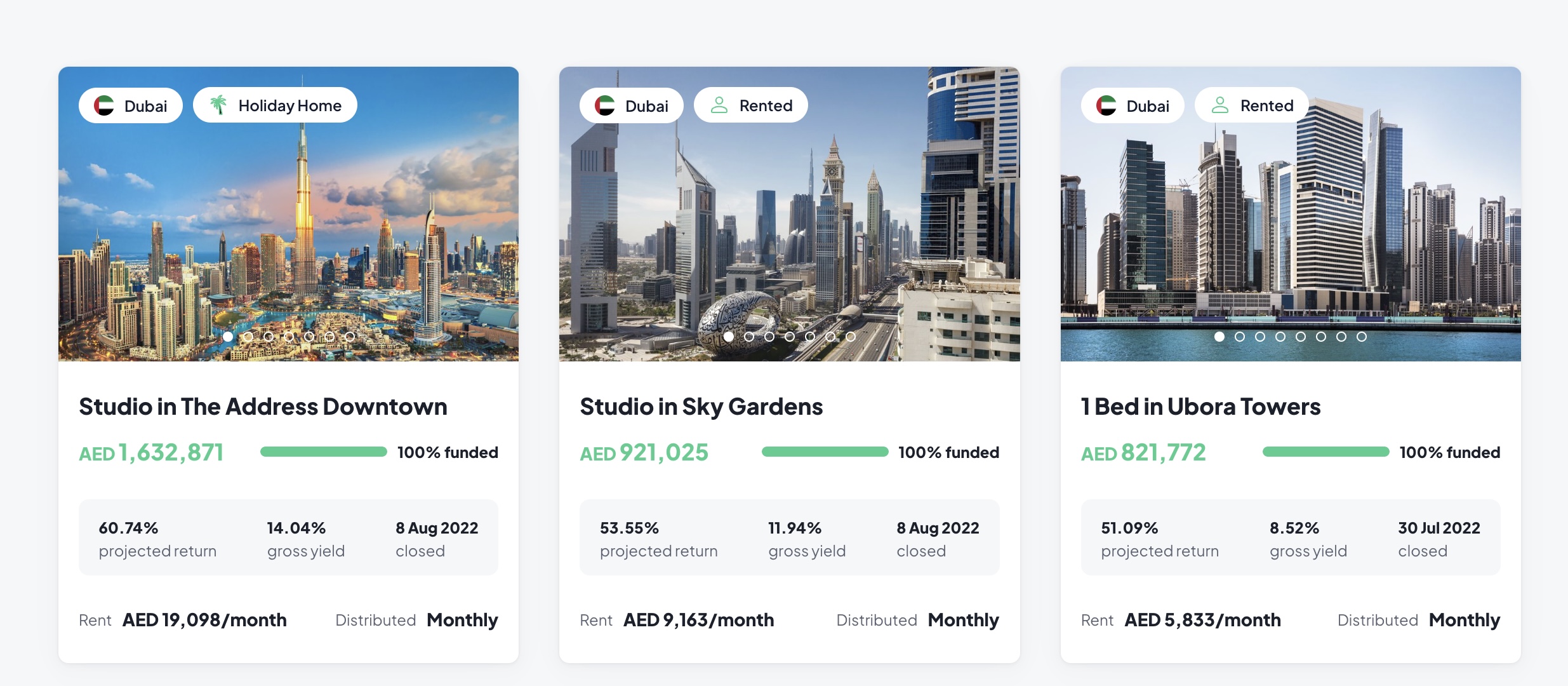 Users can quickly register with the platform and invest from as low as AED 500 ($136). Because of Dubai’s investment rules individual investors can only invest up to AED 183,500 ($50,000) per year. The proptech company also limits maximum ownership by a single investor in a property to 33% to evenly spread out gains.