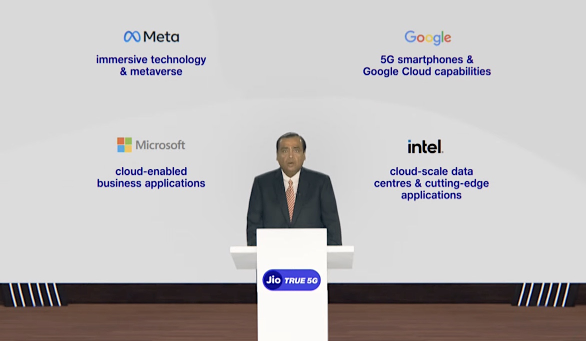 The company is working with Meta, Google, Microsoft, Intel and Qualcomm to broaden their joint collaborations, Ambani said.
