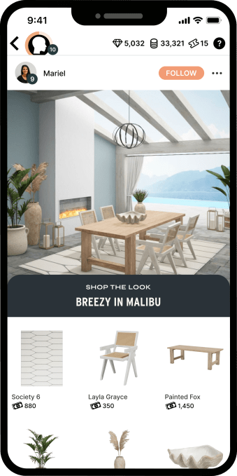 At launch, PLAYHOUSE features shoppable experiences that connect players to brands like Arhaus, Article, 1stDibs, Chairish, One Kings Lane, ABC Carpet & Home, Jenni Kayne, Society6, Bloomscape, Room & Board and Lulu & Georgia, among others. In other words, the game’s goal isn’t just to provide a creative outlet for art and interior design fans but to also drive the discovery of new furniture and decor.