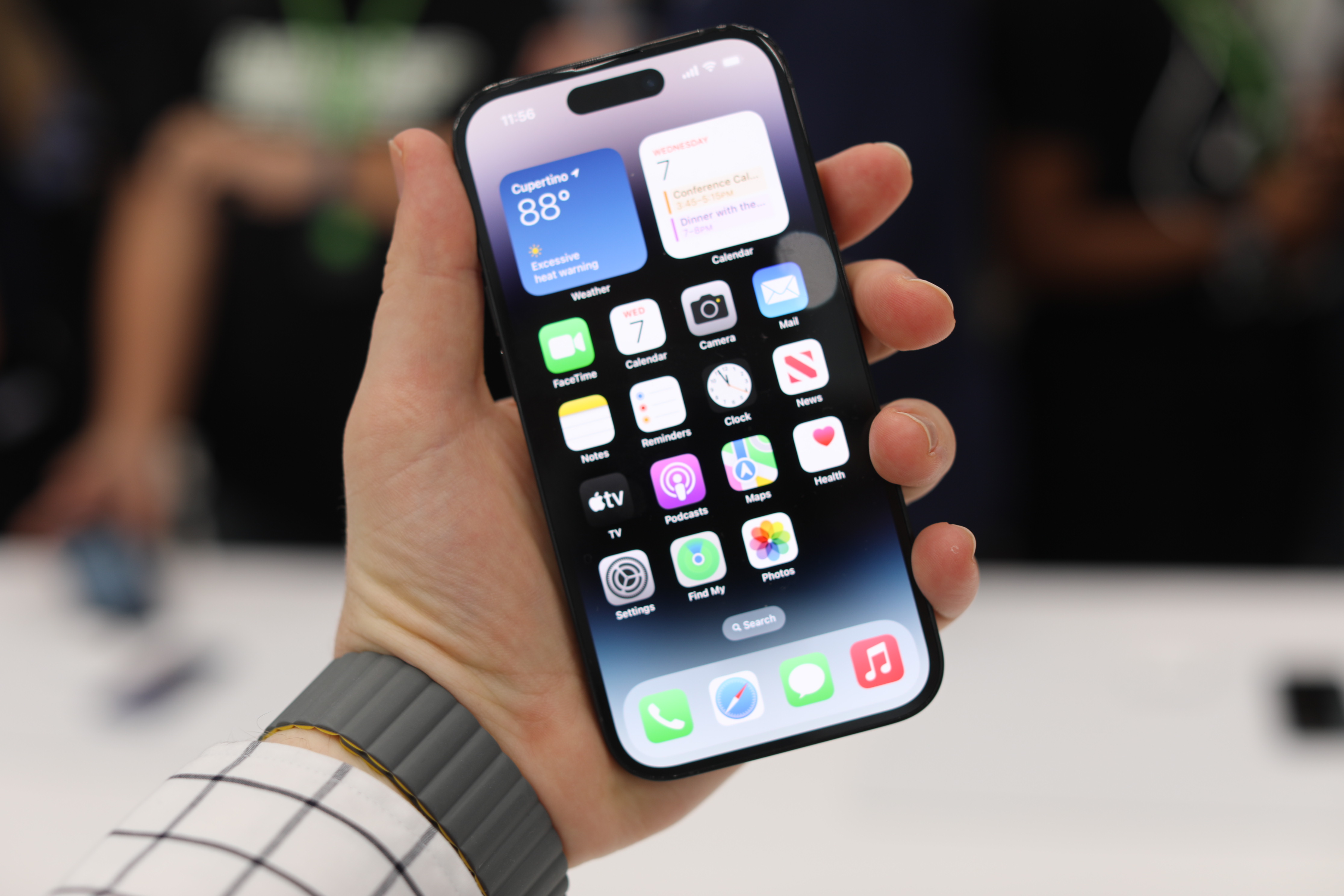 On the two Pro models, it’s been swapped out for an oblong object that many took to calling a “pill,” even before it was officially announced. The pill is not contiguous with the bezel, unlike the notch. It just kind of floats out there … well, like an island. A Dynamic Island, if you will. Reader, I’m here to tell you that when the company announced that name, there was audible laughter throughout Steve Jobs Theater.