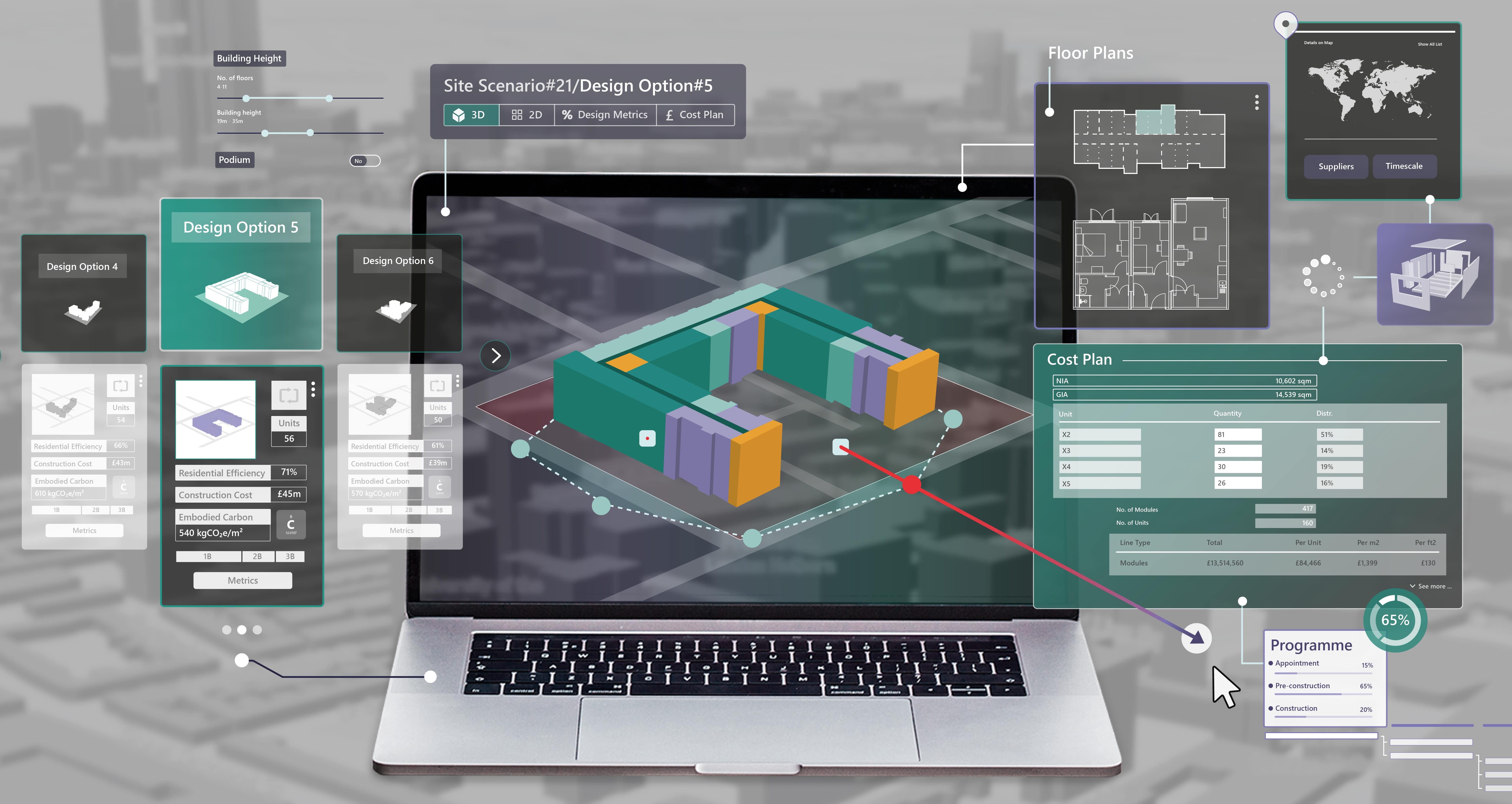 For planners, Modulous produces 3D visualizations and detailed costings up front, giving everyone real-time data on their return on investments (ROI). And it also helps everyone involved in a housing project establish the technical feasibility of a proposed development in a matter of hours, rather than weeks.